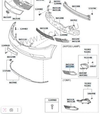 Рамка правой противотуманной фары в бампер MOBIS (HYUNDAIKIA) KIA Cerato 2 TD седан (2008-2013)