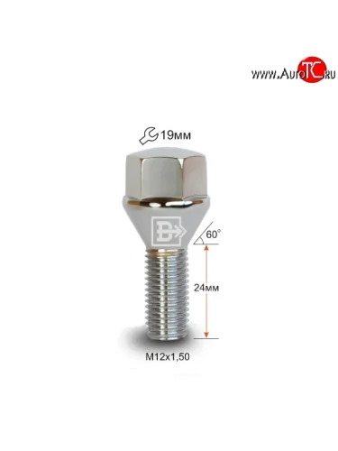 Колёсный болт длиной 24 мм Вектор M12 1.5 24 под гаечный ключ (пос.место: конус) Suzuki SX4 JAB, JYA хэтчбэк рестайлинг (2016-2021)