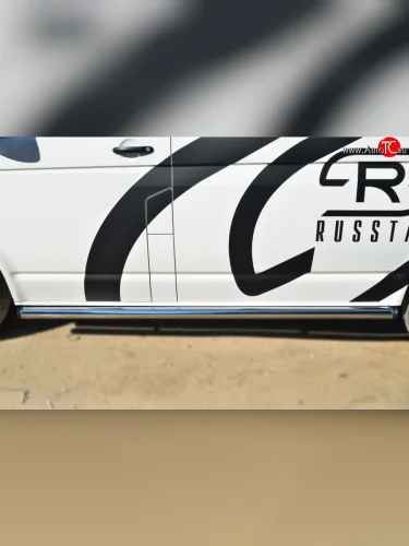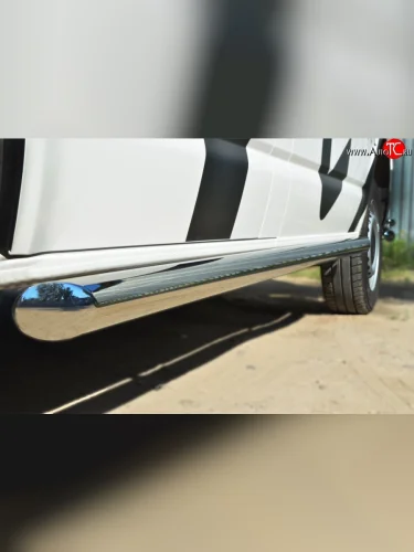 Левая защита порогов из круглой трубы диаметром 63 мм Russtal Volkswagen Transporter (2015-2019) T6 (Защита порогов с со скосами на торцах (вариант 1))