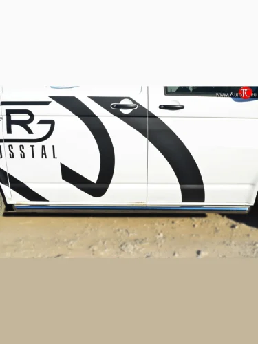 Правая защита порогов из круглой трубы диаметром 63 мм Russtal Volkswagen Transporter (2015-2019) T6 (Защита порогов с со скосами на торцах (вариант 1))
