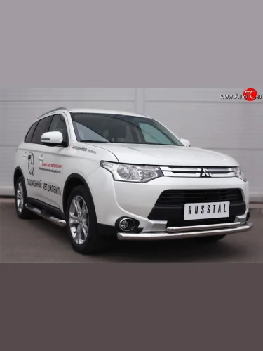 Защита порогов с пластиковыми вставками для ног из круглой трубы диаметром 76 мм (рестайлинг) Russtal Mitsubishi Outlander (2014-2016) 3 (Защита порогов с со скосами на торцах (вариант 1))