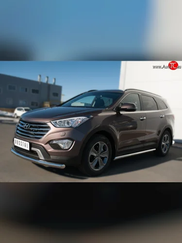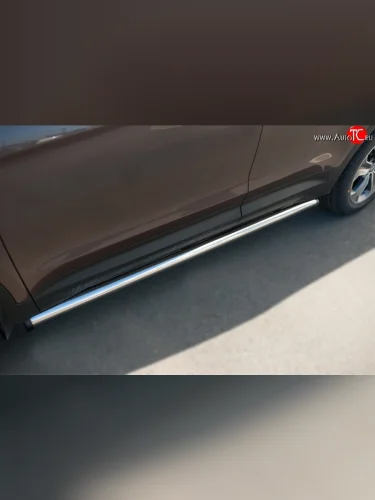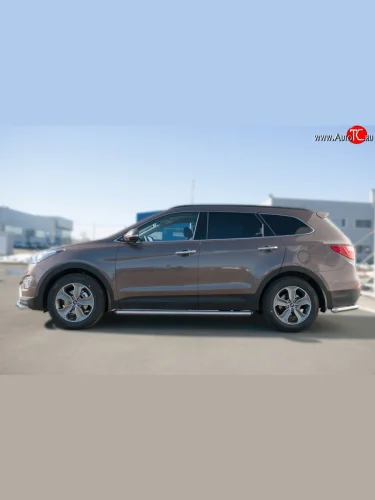 Защита порогов из круглой трубы диаметром 63 мм Russtal Hyundai Grand Santa Fe (2013-2016) 1 DM (Защита порогов с со скосами на торцах (вариант 1))