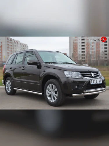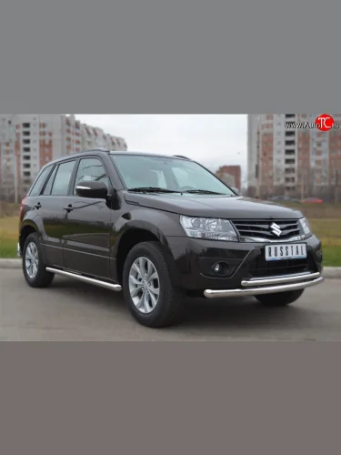 Защита порогов из круглой трубы диаметром 63 мм (5 дв.) Russtal Suzuki Grand Vitara (2012-2016) JT 5 дверей (Защита порогов с со скосами на торцах (вариант 1))