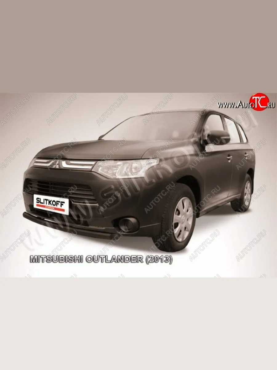 Защита переднего бампер Slitkoff (57 мм, короткая) Mitsubishi Outlander (2012-2014) GF (Цвет: серебристый)