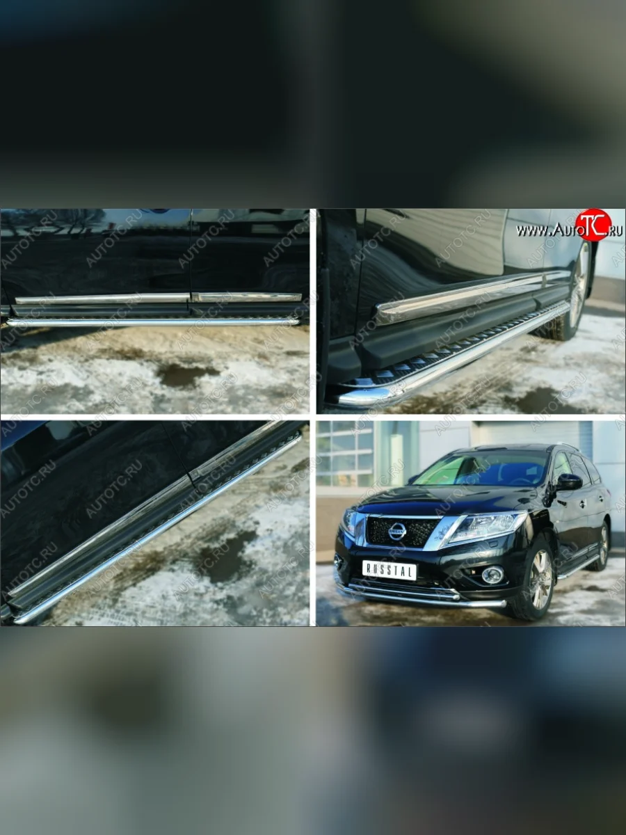 Порожки для ног (Ø42) SLITKOFF Nissan Pathfinder (2012-2017) R52 (лист - алюминий, профиль - сталь)
