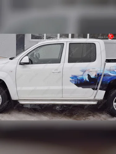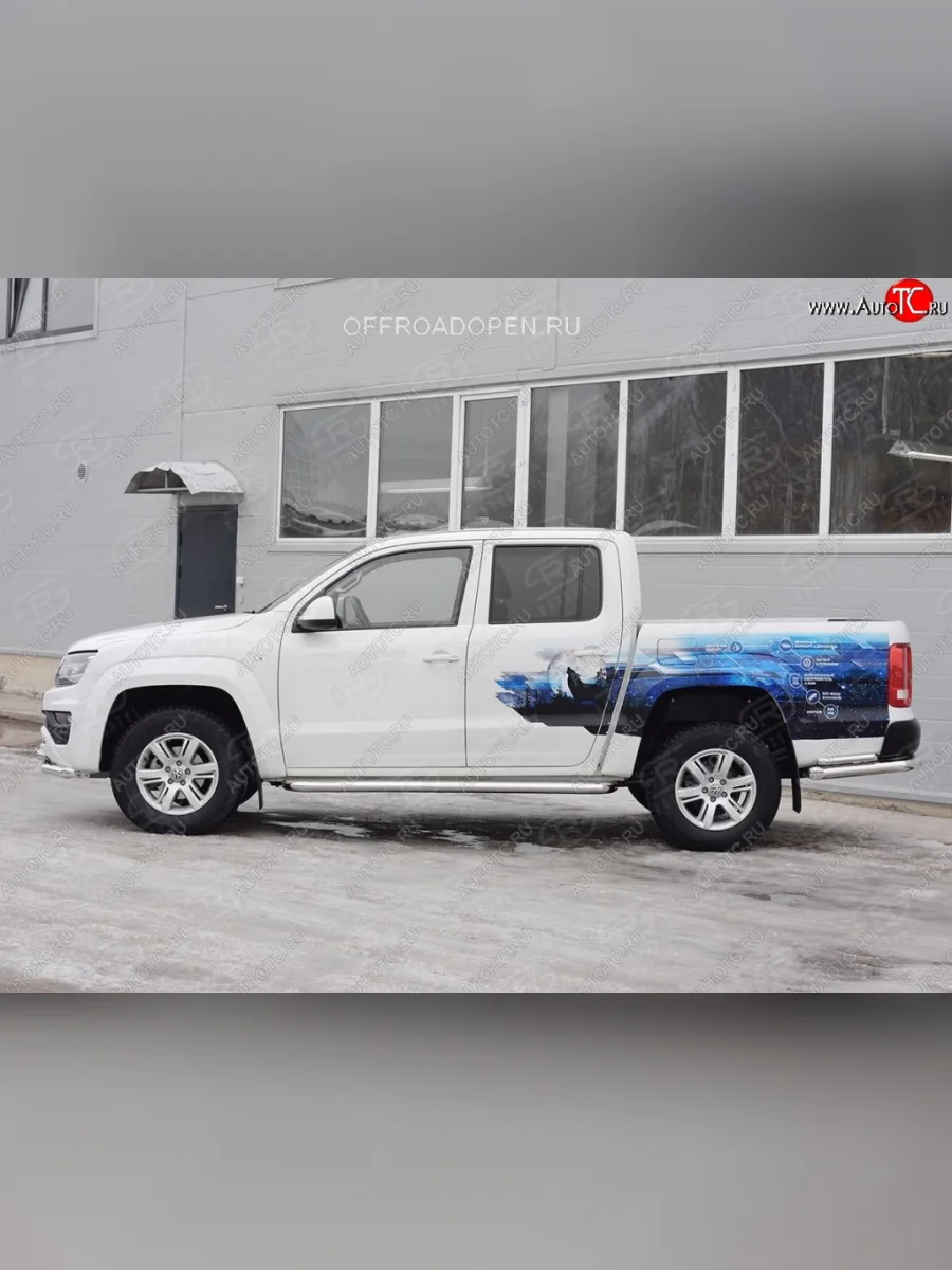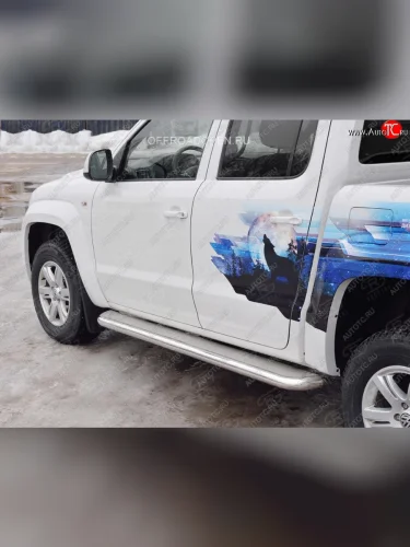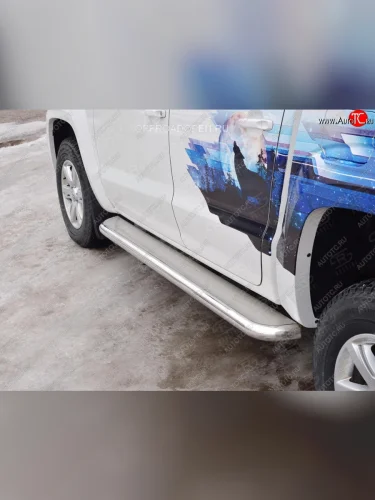Порожки для ног (Ø63 мм) SLITKOFF Volkswagen Amarok (2016-2022) (Лист нержавейка, профиль нержавейка)