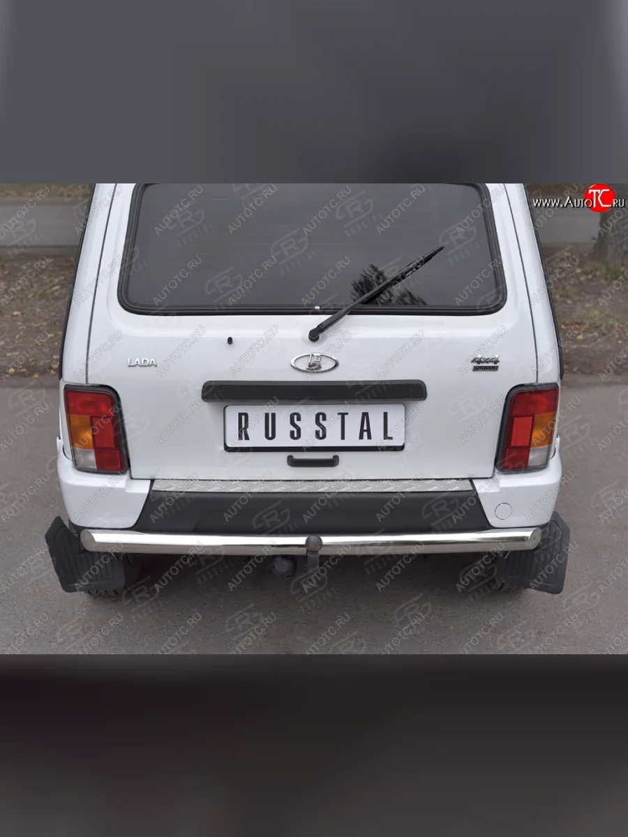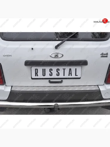 Накладка на задний бампер Russtal Лада ВАЗ нива 4х4 (2014-2021) 2131, 2121 (алюминий рифленый)