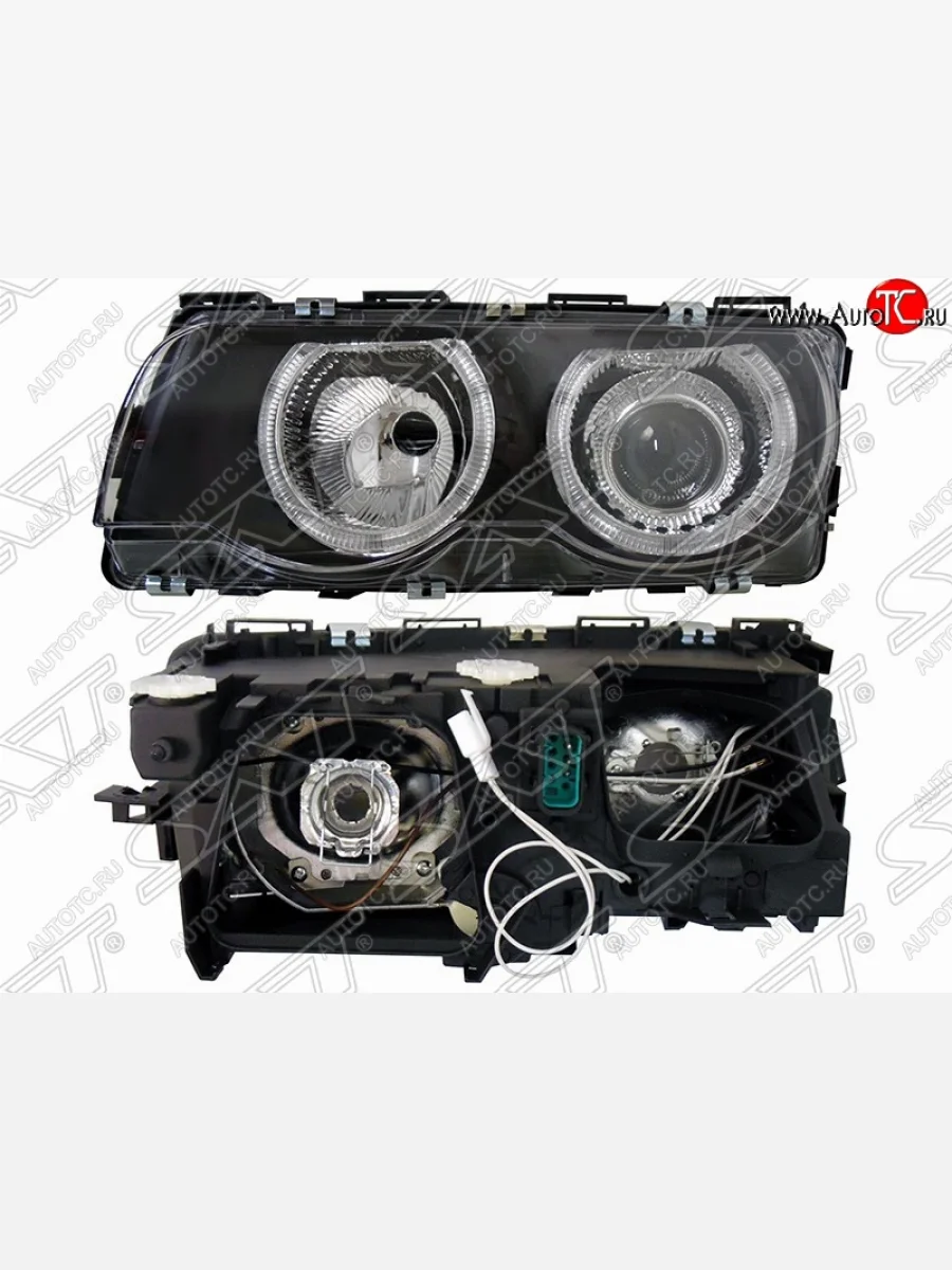 Левая фара передняя SAT (хрусталь, черная) BMW 7 серия (1998-2001) E38