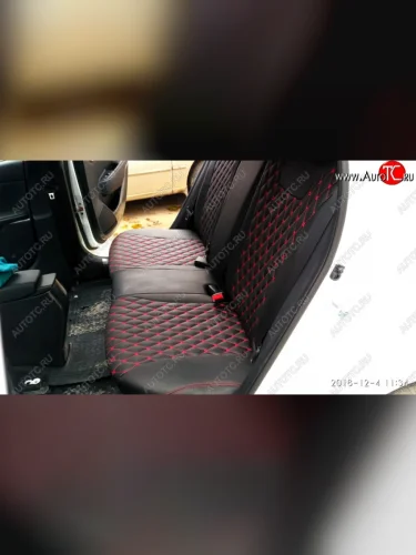 Чехлы для сидений Lord Autofashion Байрон (экокожа) Лада ВАЗ Веста 2180, Веста Кросс ( SW 2181, 2180), Веста Кросс NG ( 2180, SW 2181) (Чёрный, вставка чёрная, строчка красная)