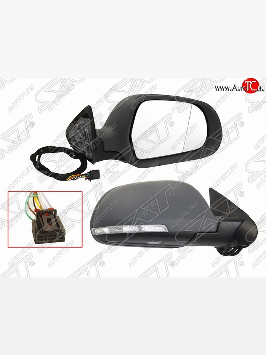 Правое боковое зеркало заднего вида SAT (складное, поворот, обогрев, подсветка, 9 контактов) Skoda Octavia (2008-2013) A5 (Неокрашенное)