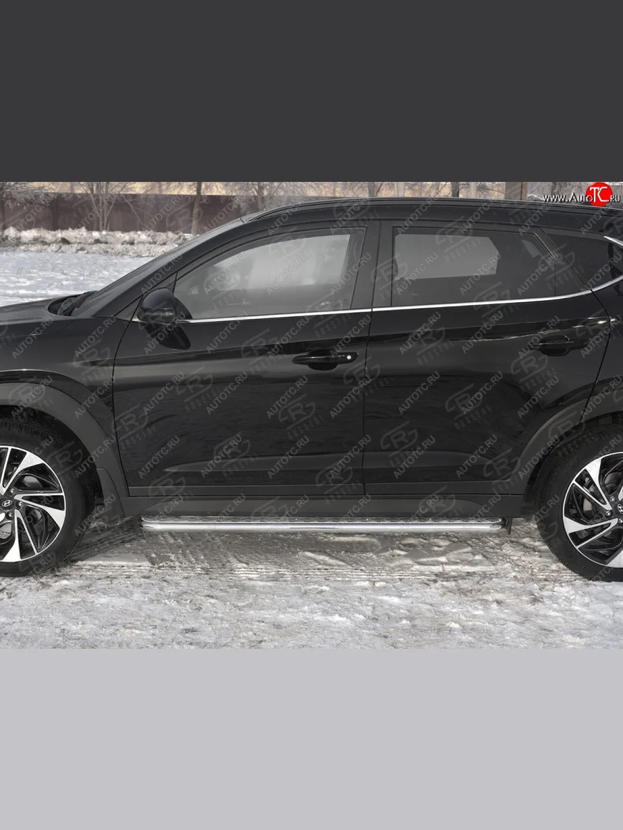 Порожки для ног SLITKOFF (Ø42 мм) Hyundai Tucson (2018-2021) TL (Лист алюминиевый, труба - сталь окрашенная в черный цвет)