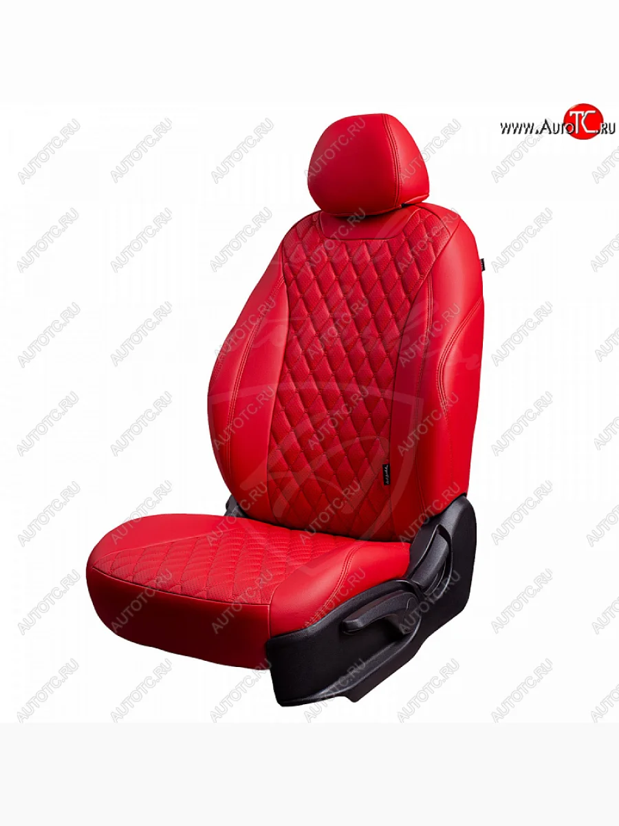 Чехлы для сидений Lord Autofashion Байрон (экокожа, раздельная задняя спинка, 3 Г-образных подголовника) KIA Rio (2017-2025) X-line, X (Красный, вставка красная, строчка красная)