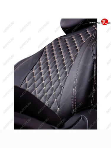 Чехлы для сидений Lord Autofashion Байрон (экокожа, спинка 40/20/40, сиденья 60/40, 3 Г-образных подголовника) Skoda Kodiaq (2017-2021) 1 NS7 (Черный, вставка черная, строчка бежевая)