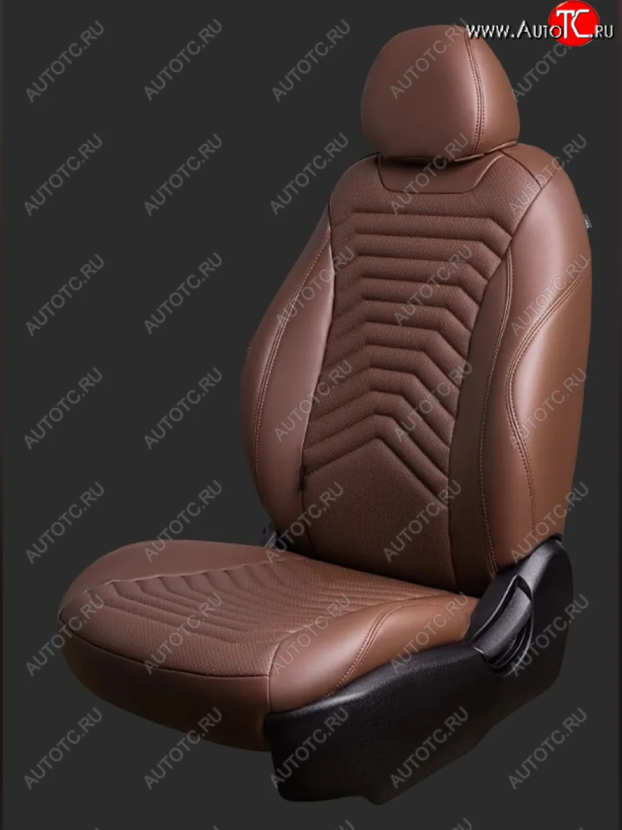 Чехлы для сидений Lord Autofashion Байрон ПРЕЗИДЕНТ (экокожа, спинка 60/40, 3 Г-образных подголовника) KIA Seltos (2019-2025) (Темно-коричневый, вставка темно-коричневая, строчка коричневая)