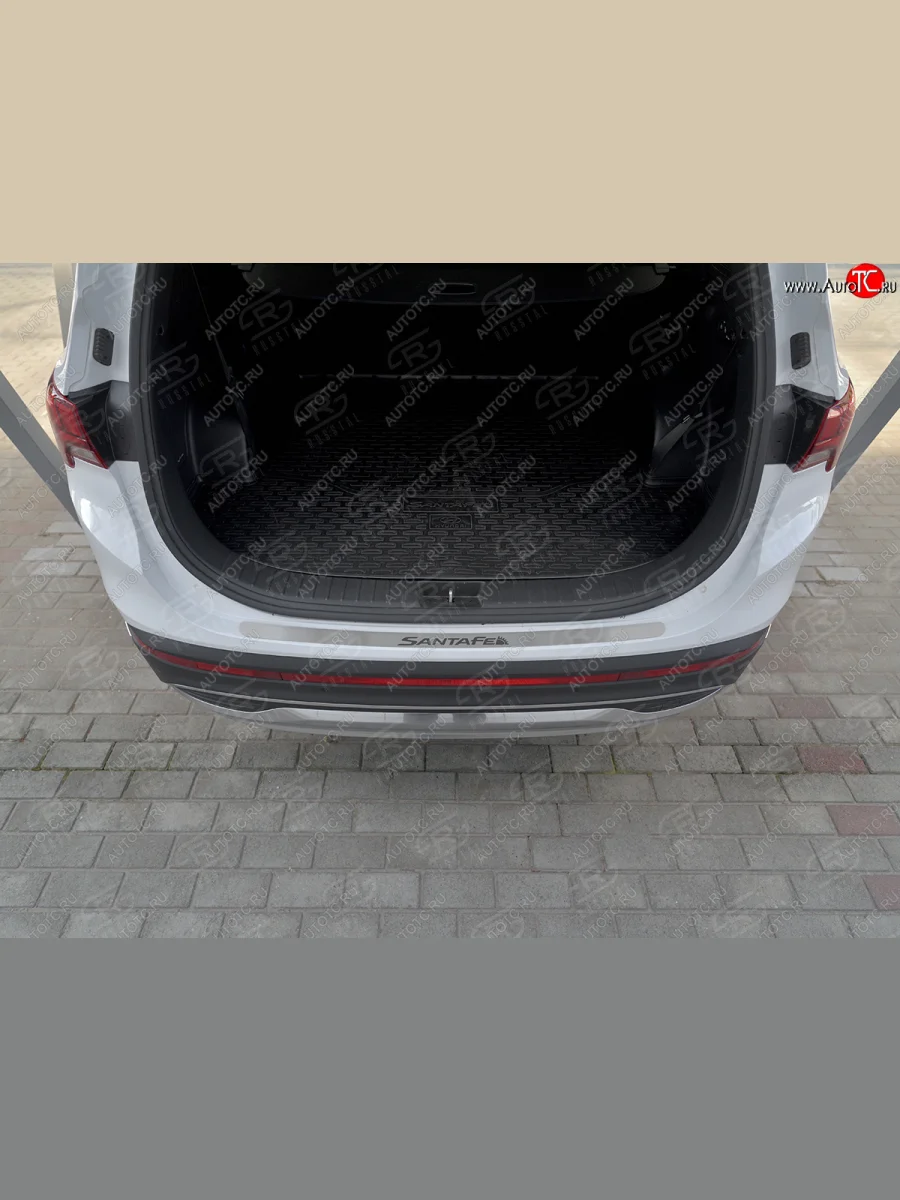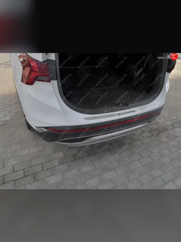 Защитная накладка заднего бампера Russtal Hyundai Santa Fe (2020-2022) TM (нержавейка шлифованная с надписью)
