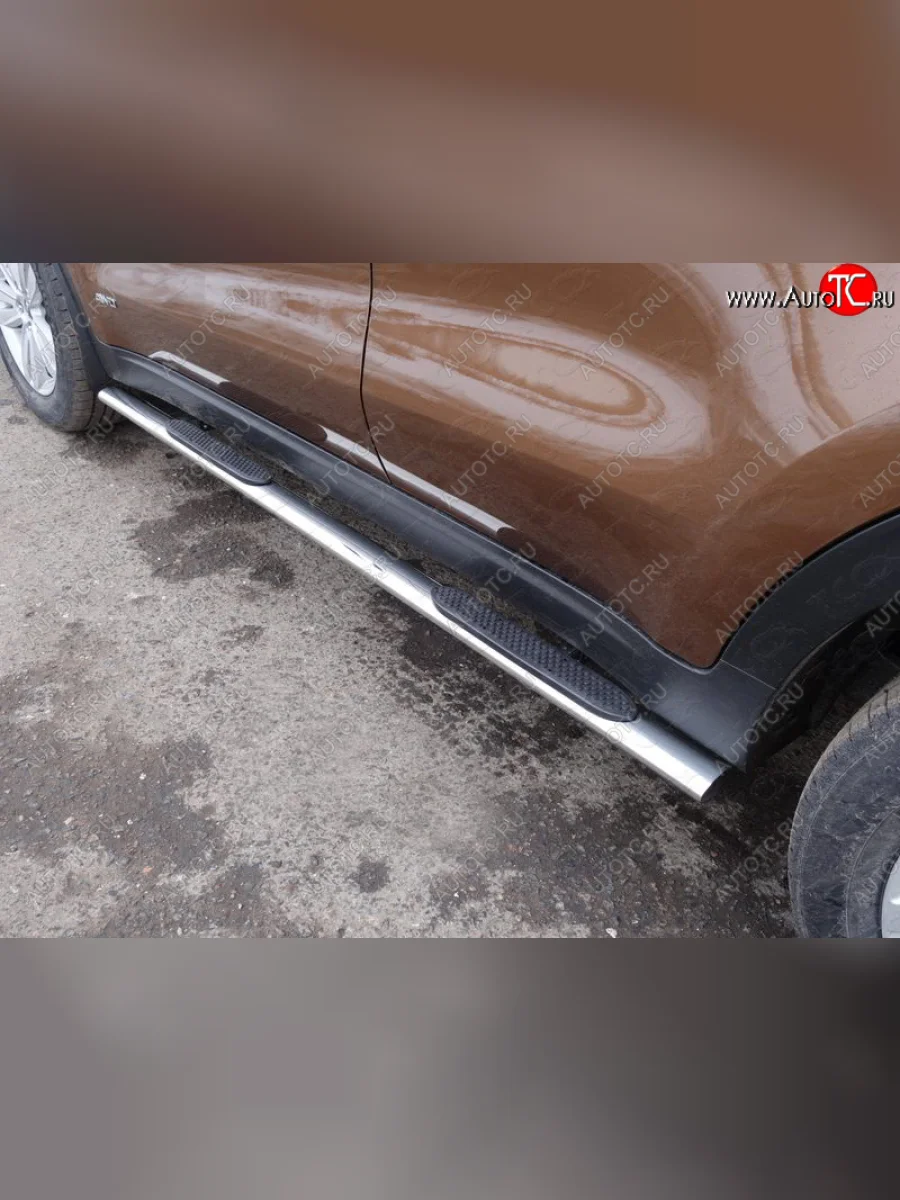 Пороги овальные с накладкой 75х42 мм ТСС Тюнинг KIA Sportage (2018-2022) 4 QL (серые)