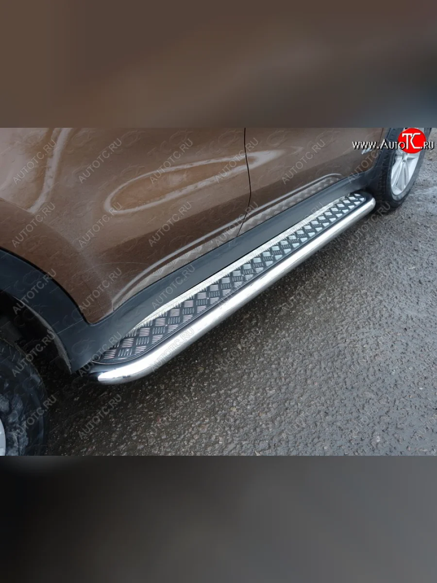 Пороги с площадкой 60,3 мм ТСС Тюнинг KIA Sportage (2016-2018) 4 QL (серые)