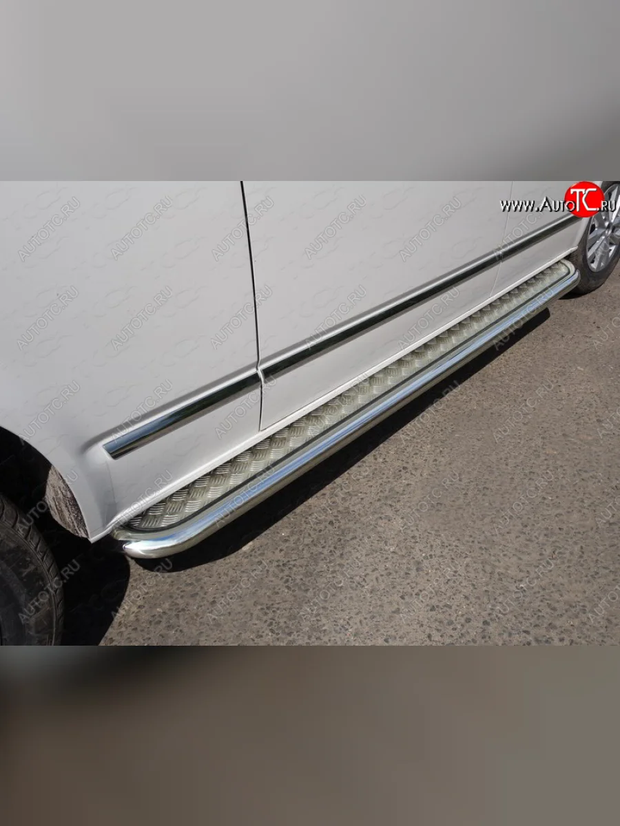 Пороги с площадкой 60,3 мм ТСС Тюнинг Volkswagen Caravelle (2015-2019) T6 (серые)