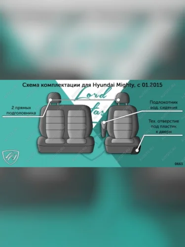 Комплект чехлов для сидений (Грузовик 1+2 места Илана+Орегон) ТУРИН ст РОМБ Lord Autofashion Hyundai Mighty (2015-2025) (черны, вставка черная, строчка черная)
