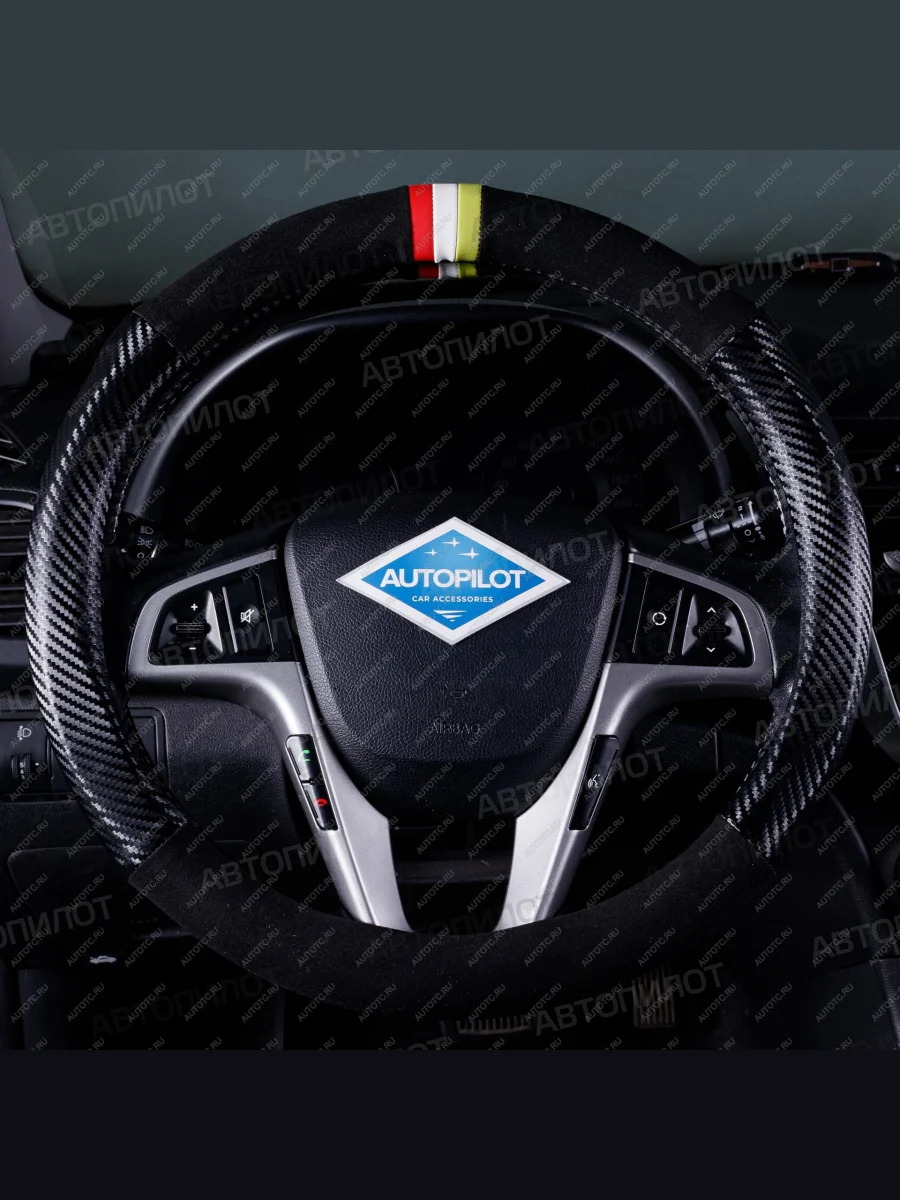 Оплётка на руль (37-39см BLW-002 кож/зам+замша ) Автопилот (черный)