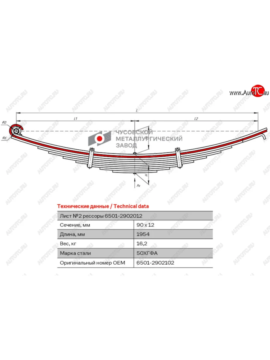 | Наименование | Лист рессоры МАЗ-6501 передней №2 L=1950мм ЧМЗ ЧМЗ 6501-2902102 |