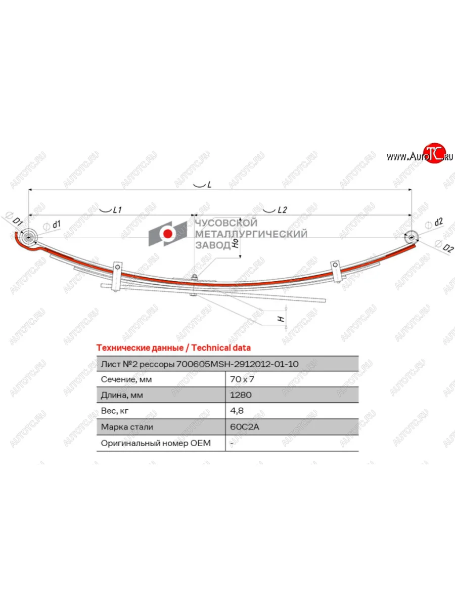 Лист рессоры MITSUBISHI L200 (05-16) задней №2 (5 листов) L=1280мм ЧМЗ ЧМЗ 700605msh-2912102-01