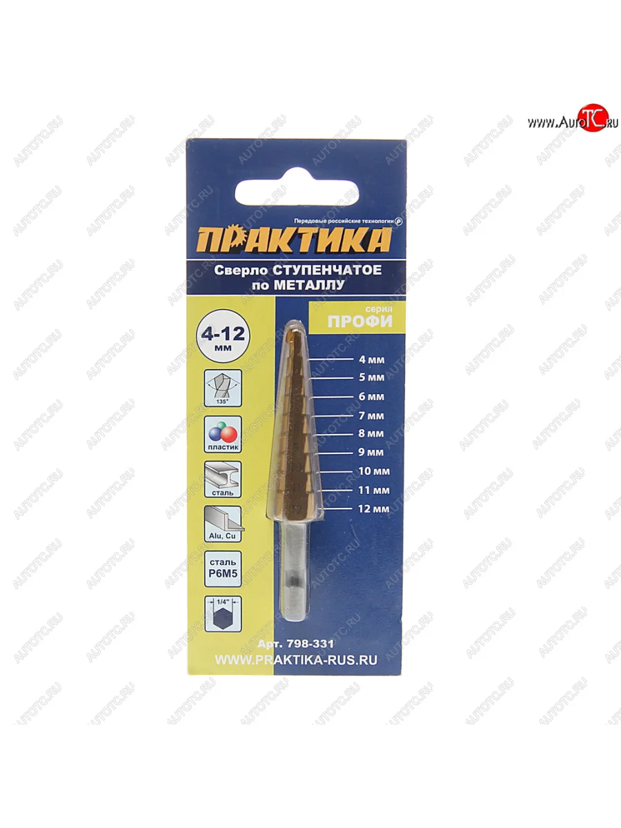 | Наименование | Сверло ступенчатое 4.0-12.0мм 9 ступеней ПРАКТИКА ПРАКТИКА 798-331 |