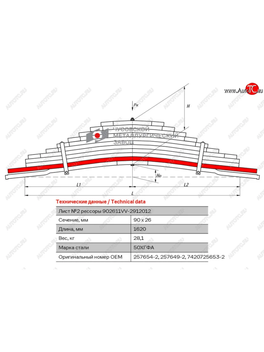 Лист рессоры VOLVO FH,FM2 (02-12) FH,FM3 (13-) FM7,9,10,12 RENAULT Kerax задней №2 L=1620мм ЧМЗ ЧМЗ 902611vv-2912102 ЧМЗ 902611vv-2912102
