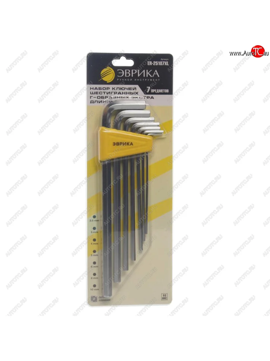 | Наименование | Набор ключей шестигранных 2.5-10мм Г-образных экстрадлинных 7 предметов ЭВРИКА ЭВРИКА er-25107xl |