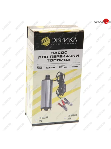 | Наименование | Насос для перекачки топлива 12V 30лмин. d=51мм 19мм 60W ЭВРИКА ЭВРИКА er-87202 |