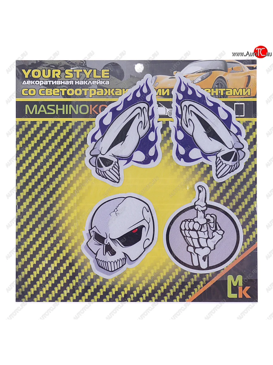 | Наименование | Наклейка виниловая светоотражающая миникомплект Синий череп 13х13см (4шт.) 1 лист MASHINOKOM MASHINOKOM tym 032 MASHINOKOM tym 032 |