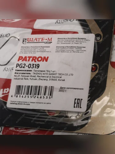 | Наименование | Прокладка головки блока AUDI A4 (05-09),A6 (11-) PATRON PATRON pg20319 |