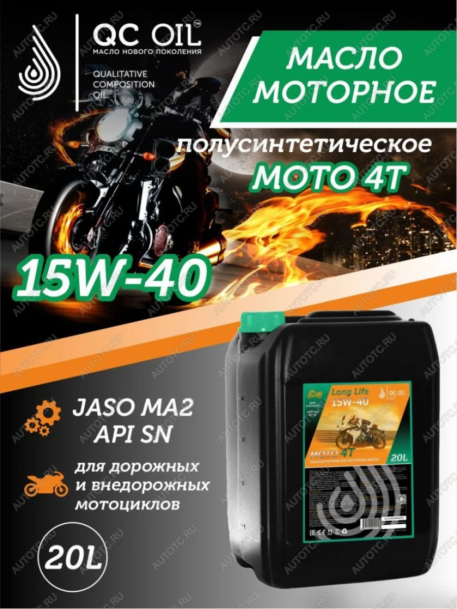 Моторное масло 15W-40 МОТО 4Т QC OIL Long Life полусинтетическое плакирующее, канистра 20л QC OIL qcllm15w40p20