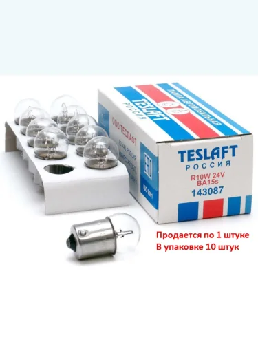| Наименование | Лампа 24V R10W BA15s 130лм Стандарт TESLAFT (Россия) |