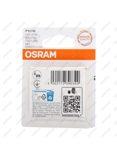 | Наименование | Лампа 12V PY21W BAU15s желтая блистер (2шт.) OSRAM |