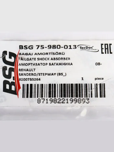 | Наименование | Амортизатор RENAULT Sandero (07-) крышки багажника BSG |