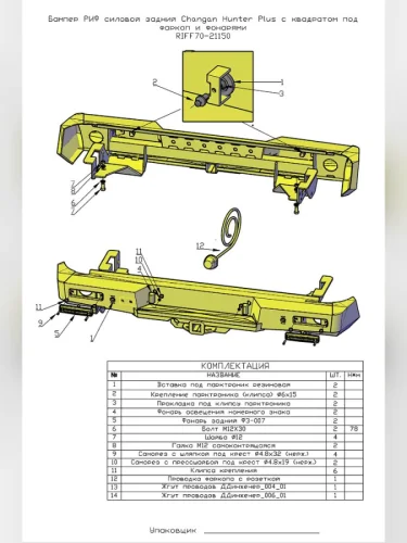| Наименование | Бампер РИФ силовой задний Changan Hunter Plus с квадратом под фаркоп и фонарями brand: РИФ |