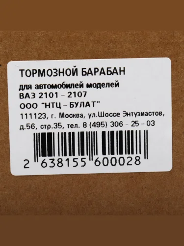 | Наименование | Барабан тормозной ВАЗ-2101-2107 НТЦ-БУЛАТ |