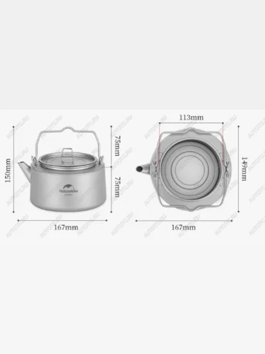 Костровой титановый чайник Naturehike предназначен для подогрева и кипячения воды, заваривания чая или приготовления различных напитков (отвары, компоты и т.п.) для небольшой группы людей во время загородных путешествий, на рыбалке, охоте или на кемпинге.