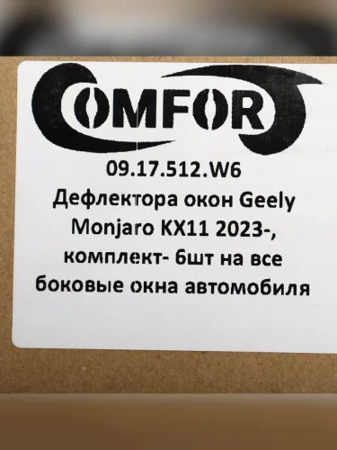 | Наименование | Дефлектор GEELY Monjaro (23-) окон комплект (6шт.) COMFORT |