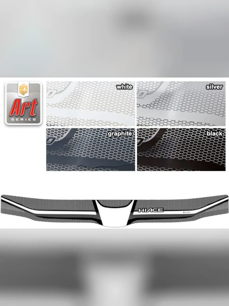 | Наименование | Дефлектор капота (exclusive) Серия Art черная Toyota Hiace Левый руль 2004–н.в. |