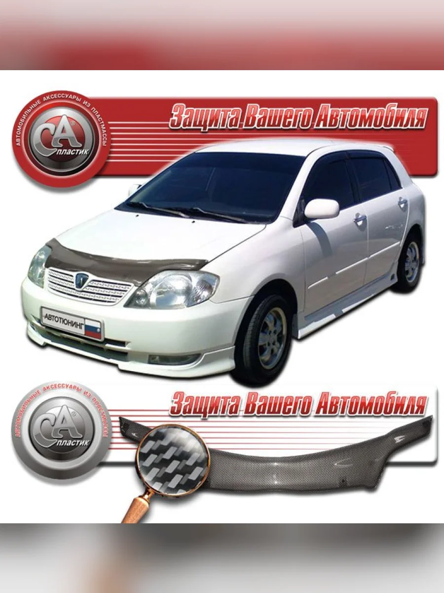 | Наименование | Дефлектор капота Шелкография карбон серебро Toyota Corolla Allex 1999-2004 |
