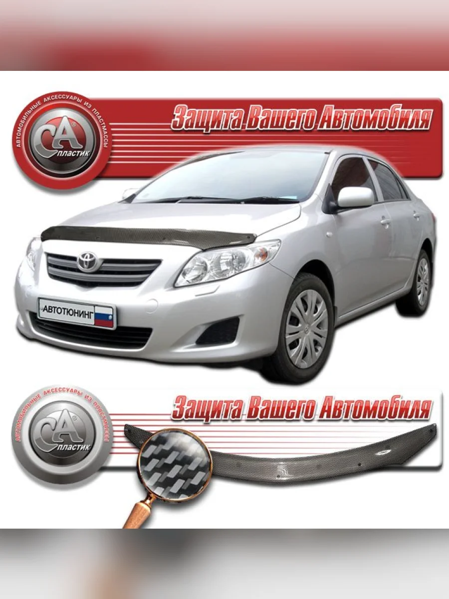| Наименование | Дефлектор капота Шелкография карбон серебро Toyota Corolla Cедан 2007-2010 |