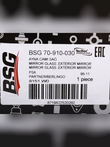 | Наименование | Элемент зеркальный PEUGEOT Partner CITROEN Berlingo (96-11) правый BSG |
