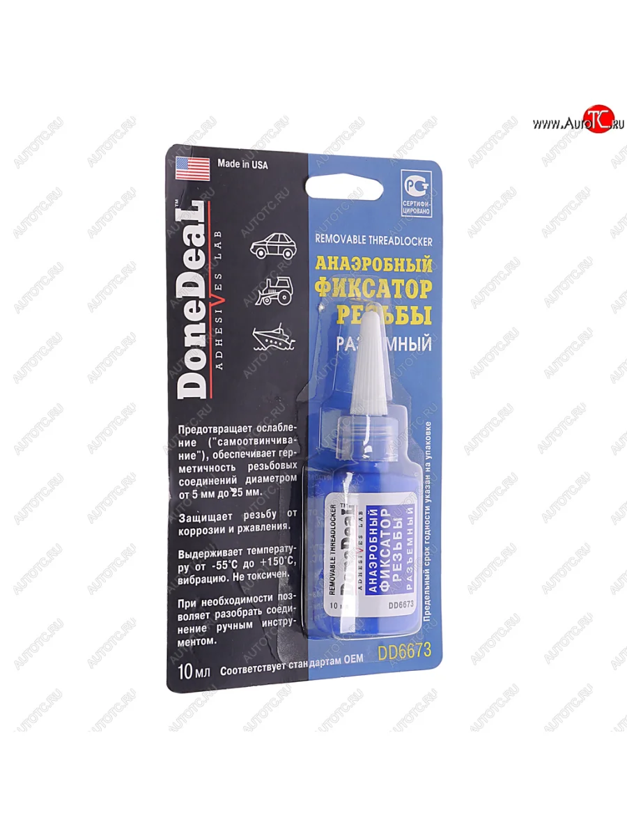 | Наименование | Фиксатор резьбы средней фиксации 10мл DONE DEAL DONE DEAL dd6673 |