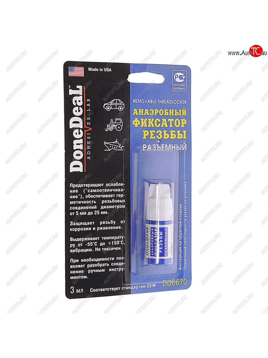| Наименование | Фиксатор резьбы средней фиксации 3мл DONE DEAL DONE DEAL dd6670 |