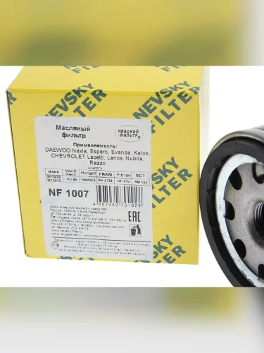 | Наименование | Фильтр масляный DAEWOO Nexia,CHEVROLET Lanos НЕВСКИЙ ФИЛЬТР |
