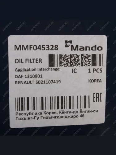 | Наименование | Фильтр масляный FORD Mondeo (07-),Focus (08-11) MANDO MANDO mmf045031 |