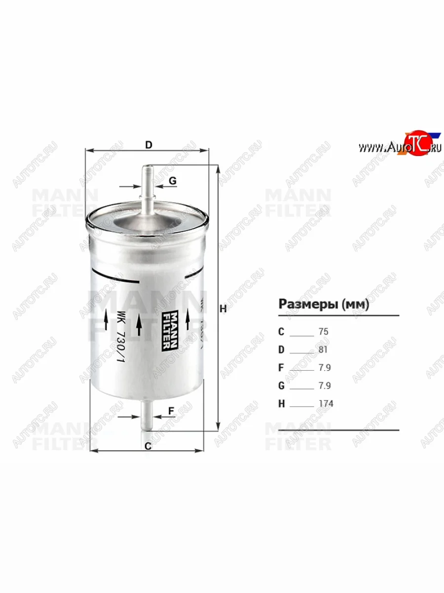 | Наименование | Фильтр топливный AUDI A3 00-SKODA OCTAVIA 96-VOLKSWAGEN GOLF 97-05 MANN WK730/1 |