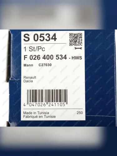 | Артикул (каталожный номер) | f026400534 |